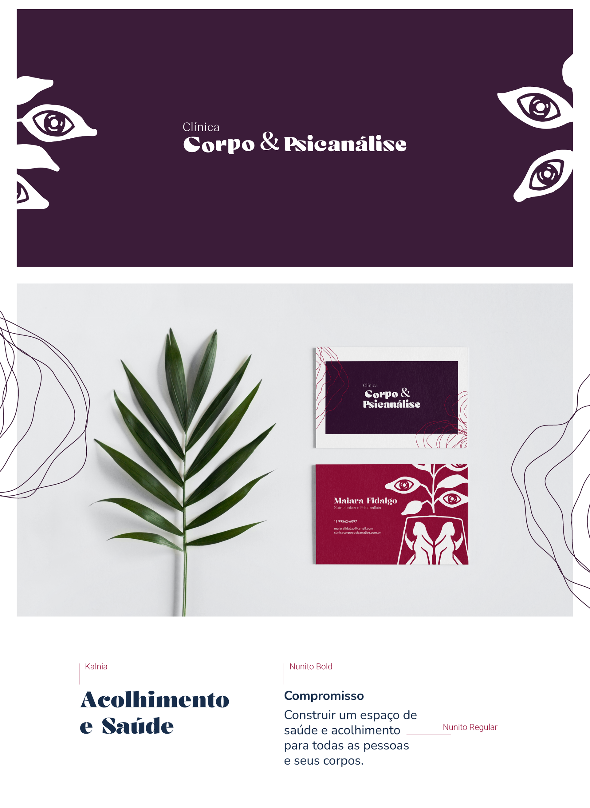 Desenvolvi toda a identidade visual da clínica Corpo e Psicanálise, cuidando de cada etapa do processo da pesquisa inicial até a criação e aplicação da marca.