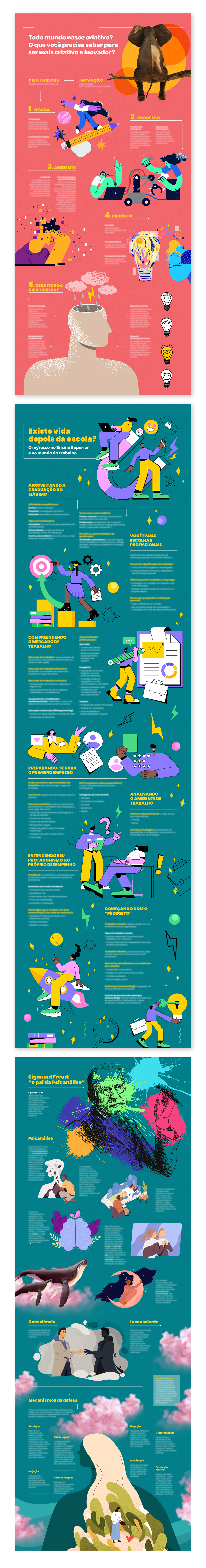 Infográficos das aulas eletivas para alunos do ensino médio. Programa Pleno de educação socioemocional.